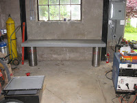 The walls of the garage were supported at intervals with beams of heavy steel channel which seemed ideal for attaching the hinges. The edges of the beams were 84½" apart, allowing a 7' wide table top.